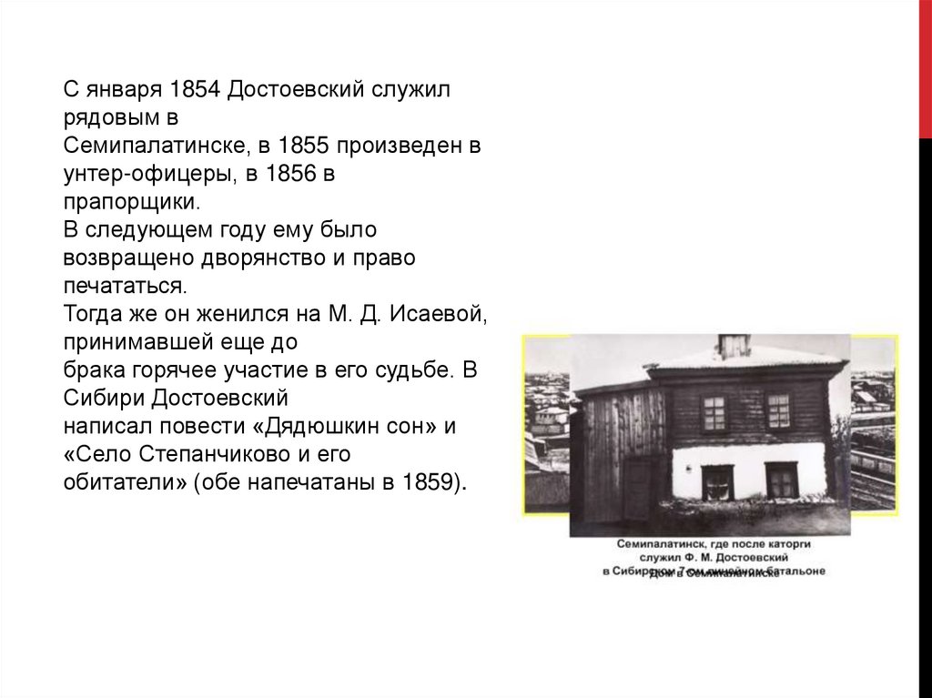 январь 1850- январь 1854 писатель провёл в Омском острогесреди уголовных преступников («это