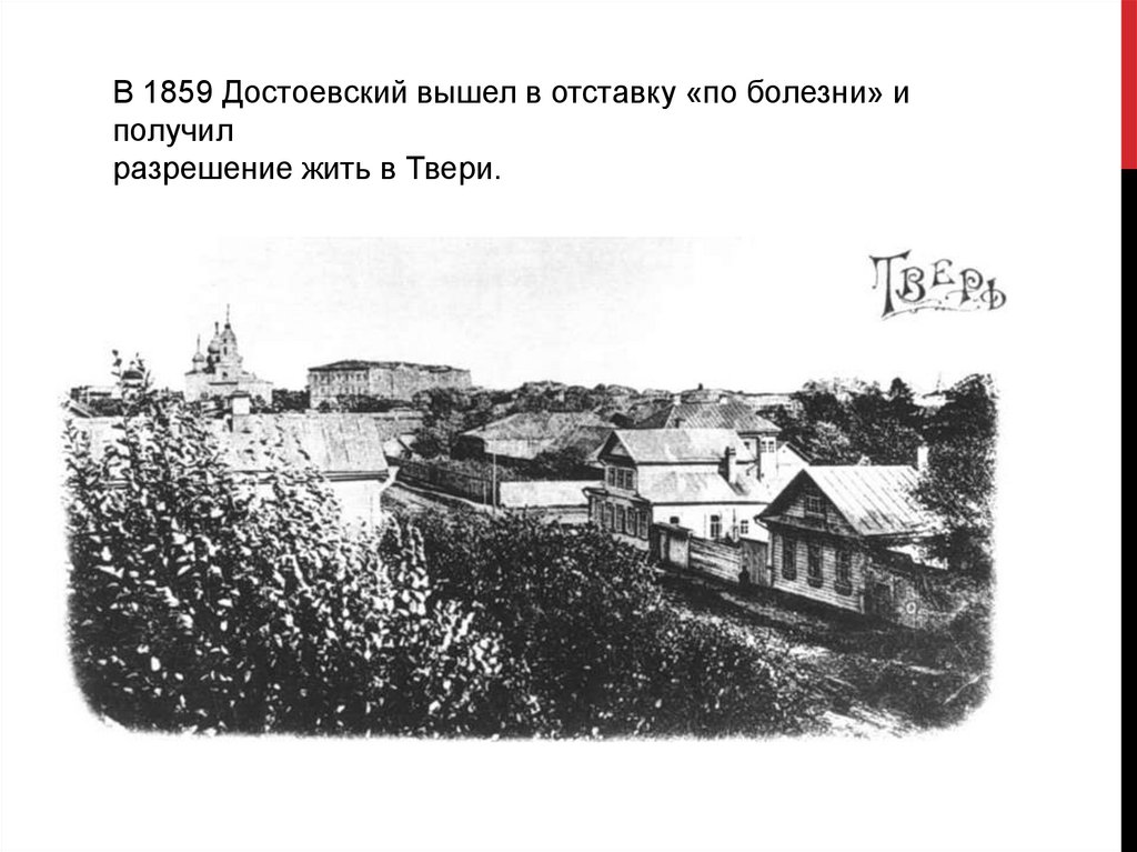 В 1859 Достоевский вышел в отставку «по болезни» иполучил