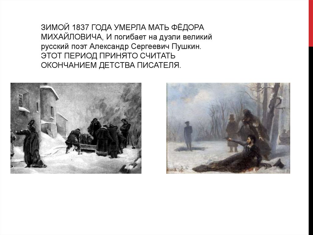 ЗИМОЙ 1837 ГОДА УМЕРЛА МАТЬ ФЁДОРАМИХАЙЛОВИЧА, И погибает на дуэли великий