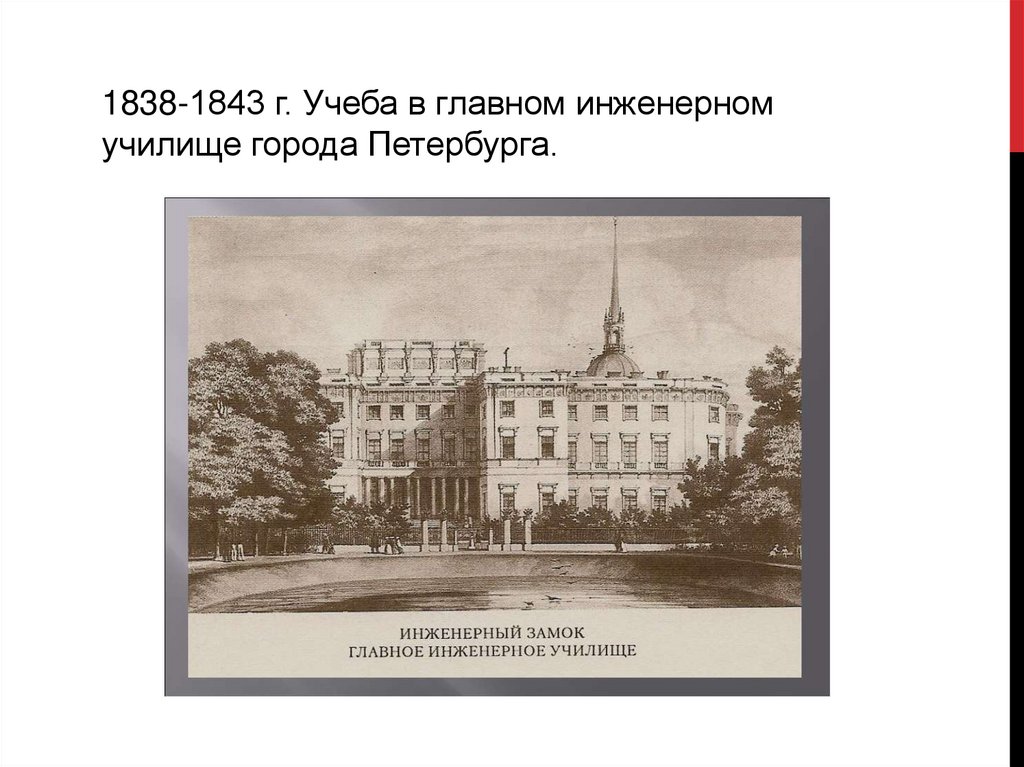 1838-1843 г. Учеба в главном инженерномучилище города Петербурга.