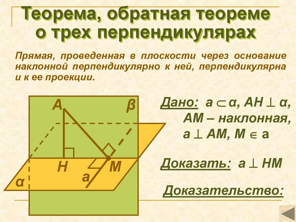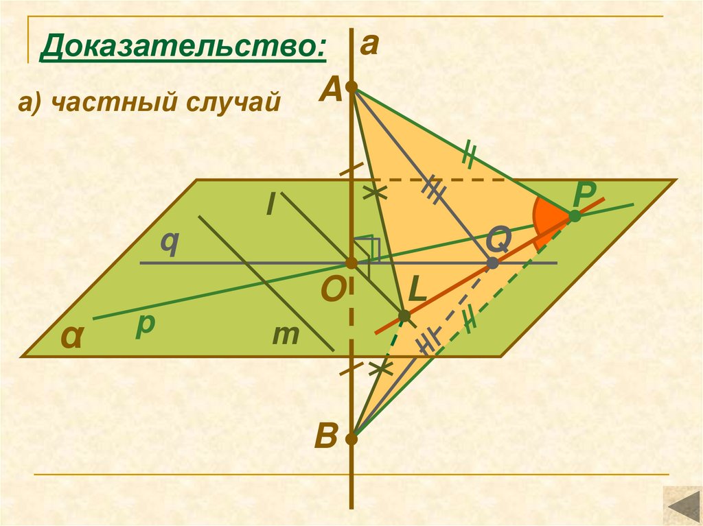 Если прямая перпендикулярна к двумпересекающимся прямым, лежащим в плоскости,
