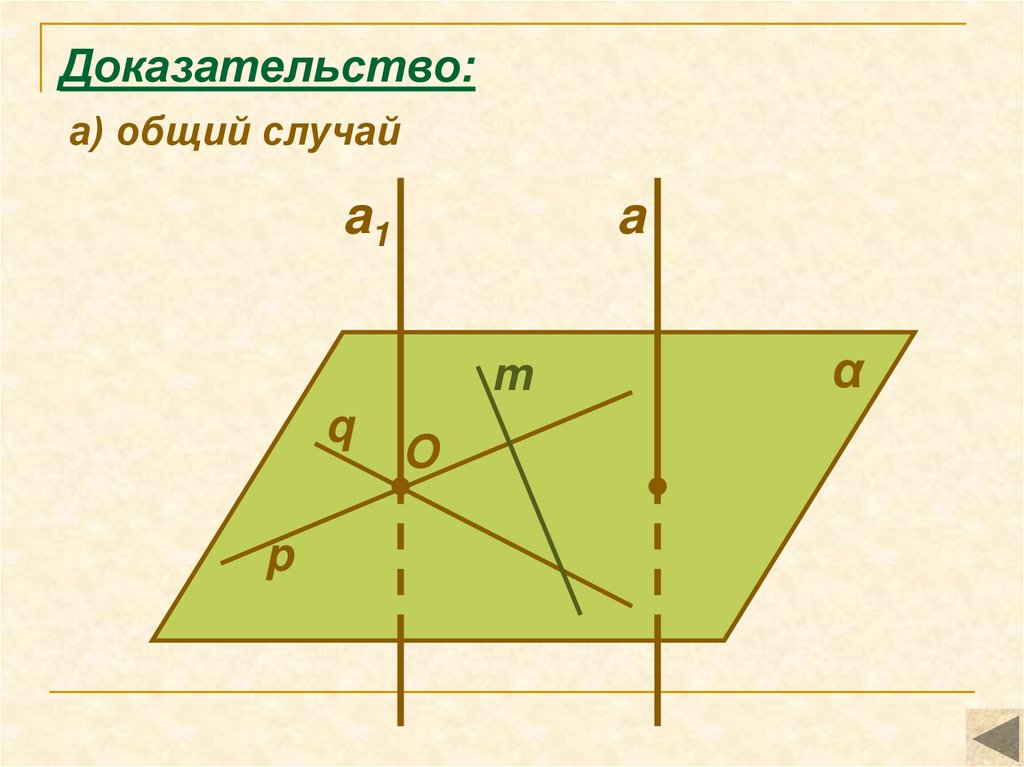 Если одна из двух параллельных прямыхперпендикулярна к плоскости, то и другая