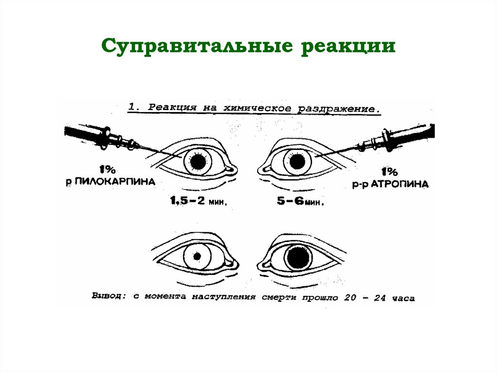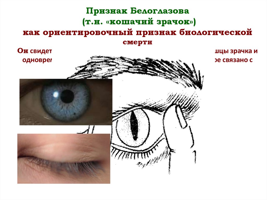 состояние зрачков, роговицы, состояние естественных отверстий, при наличии в