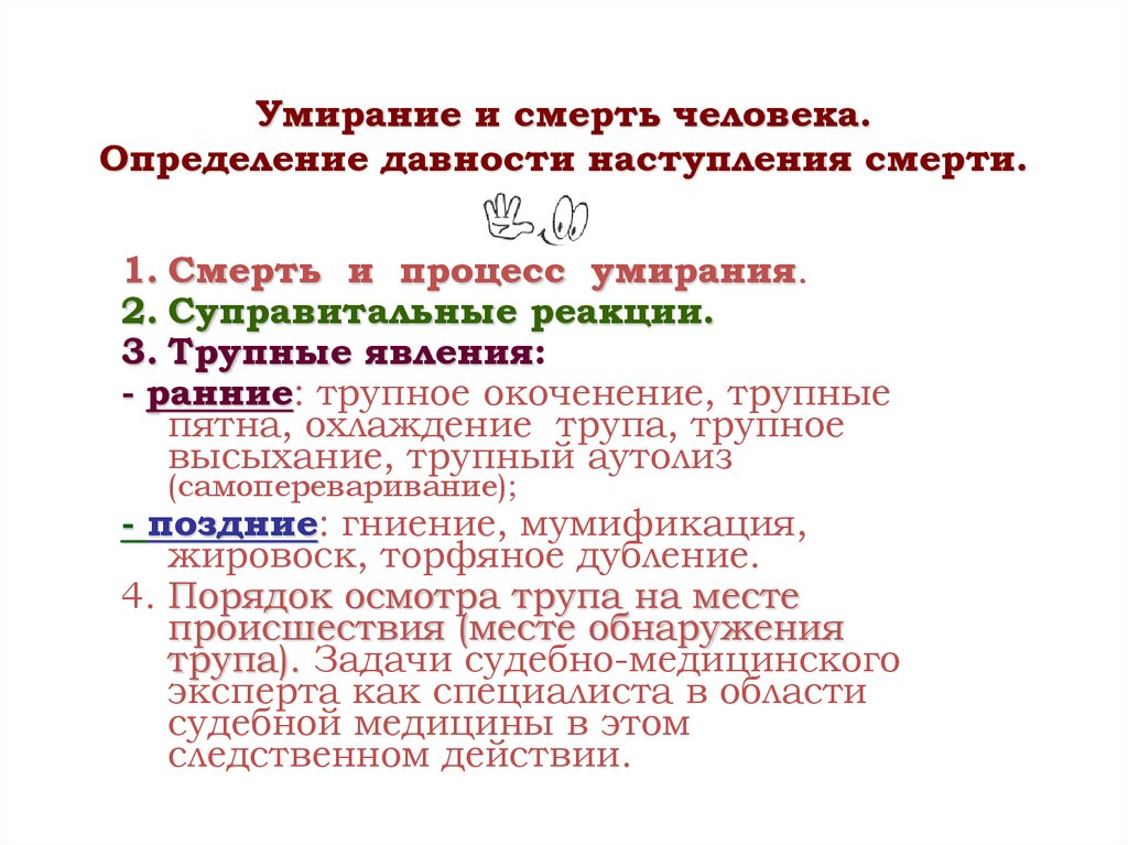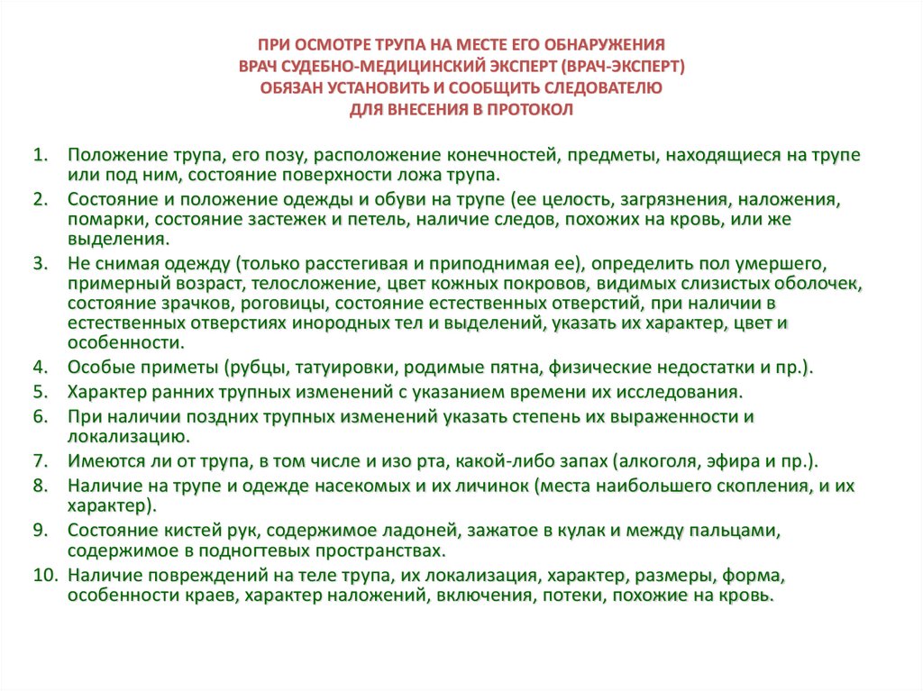 ПРИ ОСМОТРЕ ТРУПА НА МЕСТЕ ЕГО ОБНАРУЖЕНИЯВРАЧ СУДЕБНО-МЕДИЦИНСКИЙ ЭКСПЕРТ (ВРАЧ-ЭКСПЕРТ)