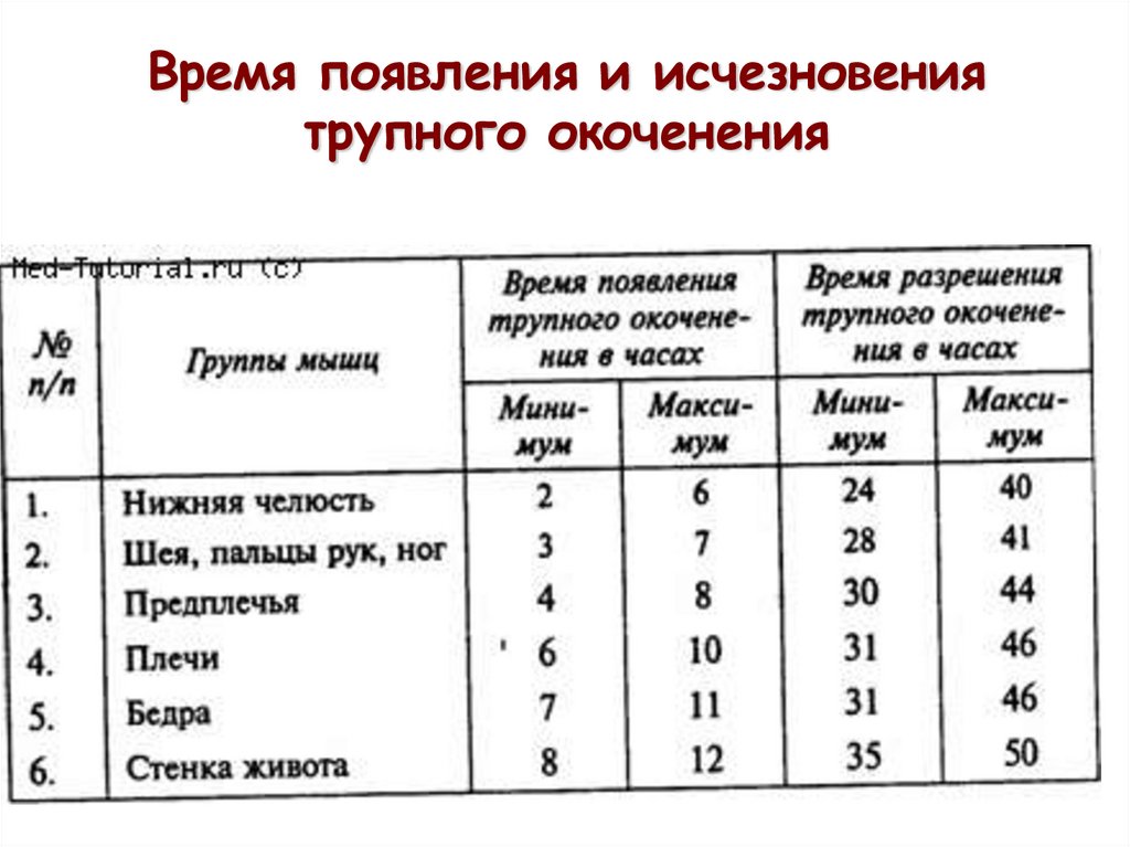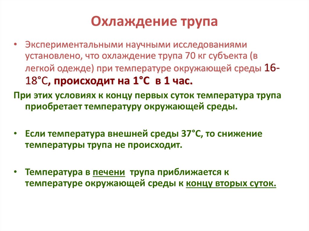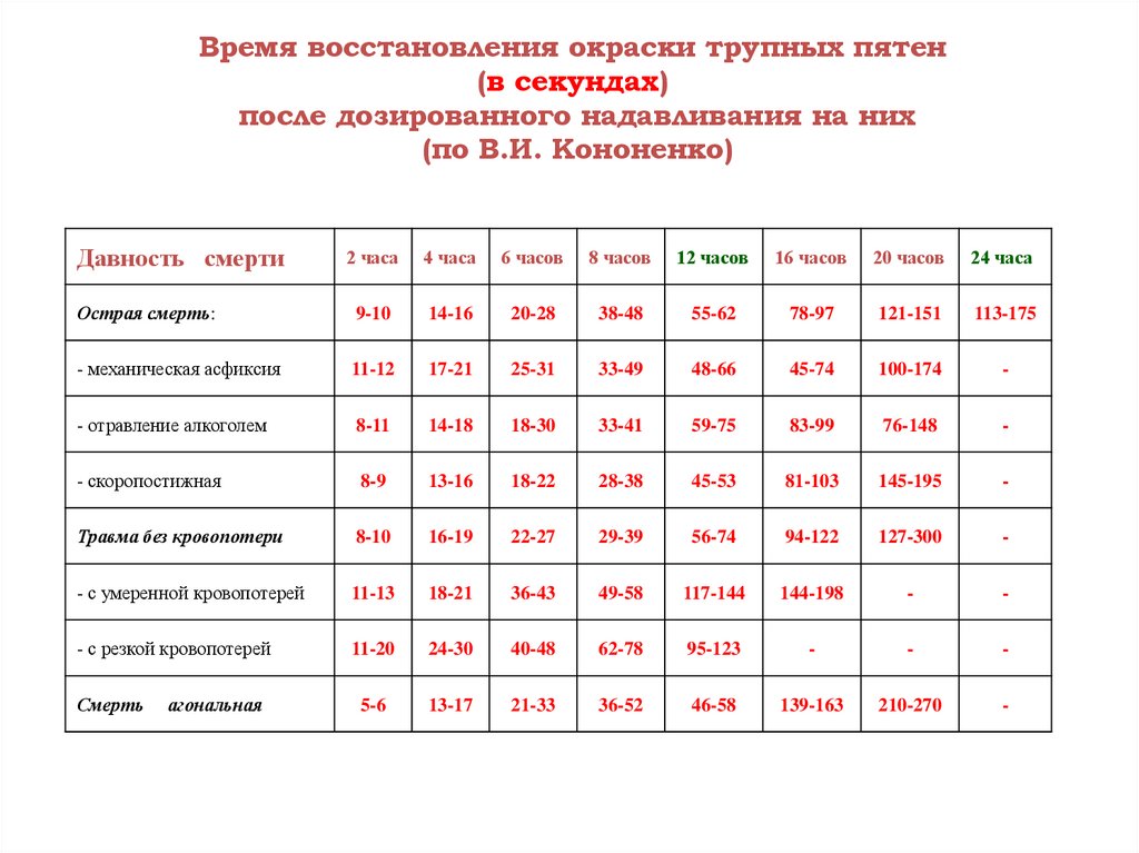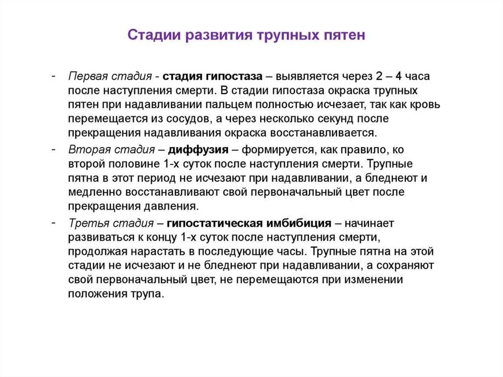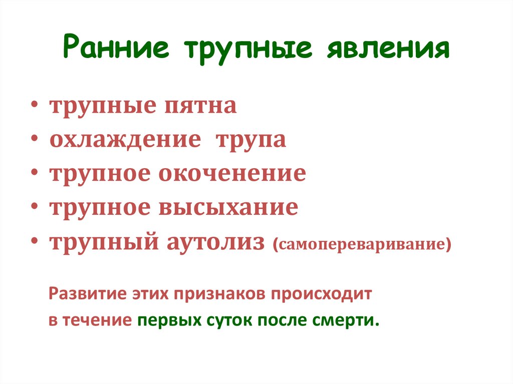5. Характер ранних трупных изменений с указанием времени их исследования.