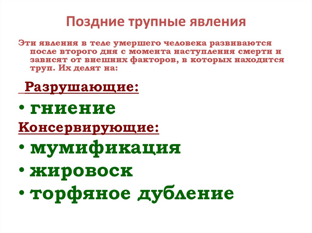 6. При наличии поздних трупных изменений указать степень их выраженности и