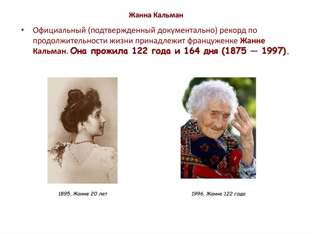 Жанна Кальман• Официальный (подтвержденный документально) рекорд по