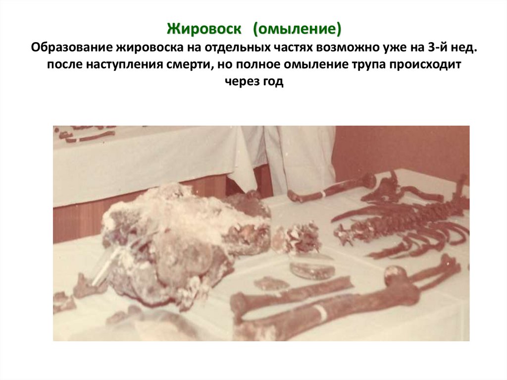 Жировоск (омыление)Образование жировоска на отдельных частях возможно уже на 3-й нед.
