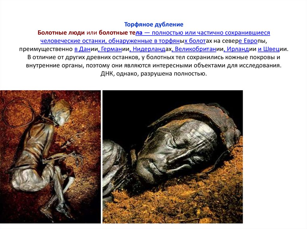 Торфяное дублениеБолотные люди или болотные тела — полностью или частично сохранившиеся