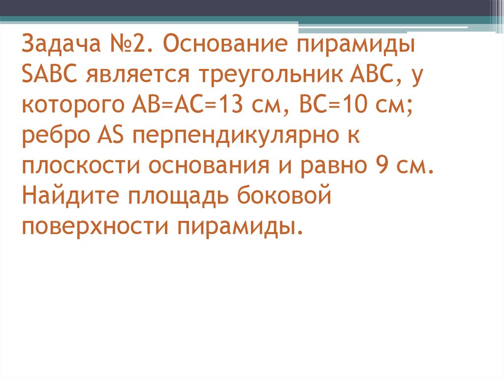 Задача №2. Основание пирамидыSABC является треугольник ABC, у