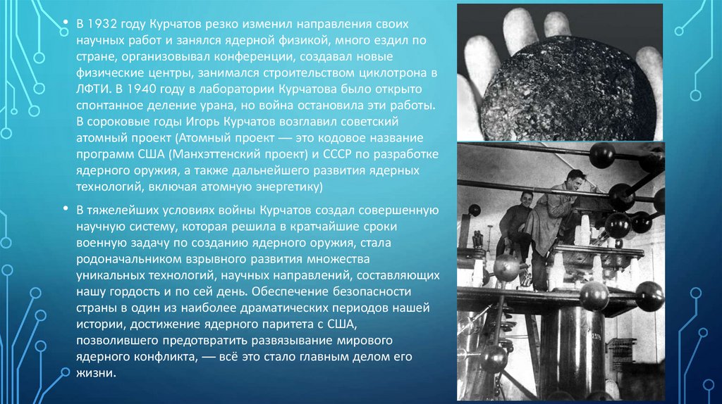 В сороковые годы Игорь Курчатов возглавил советский