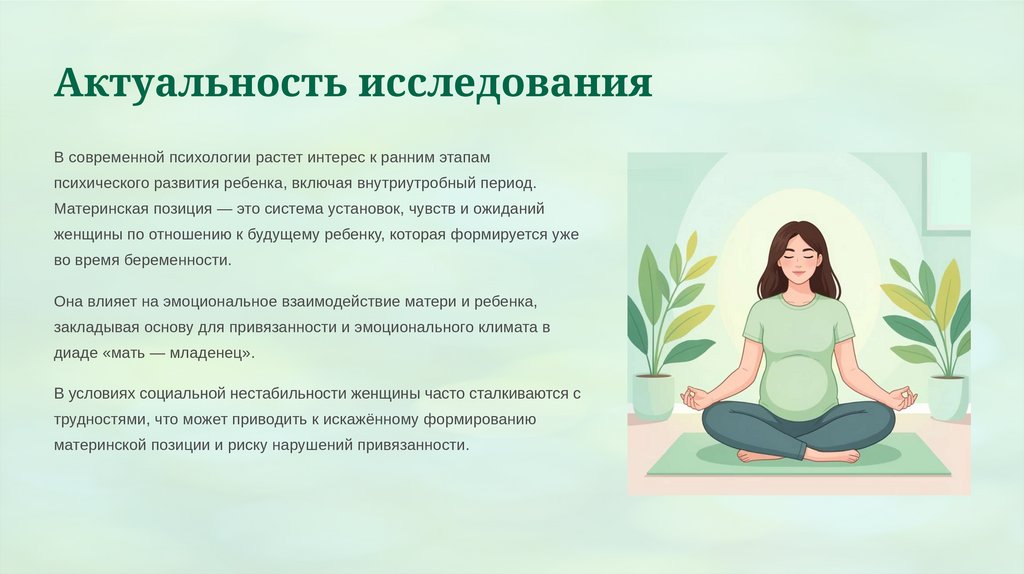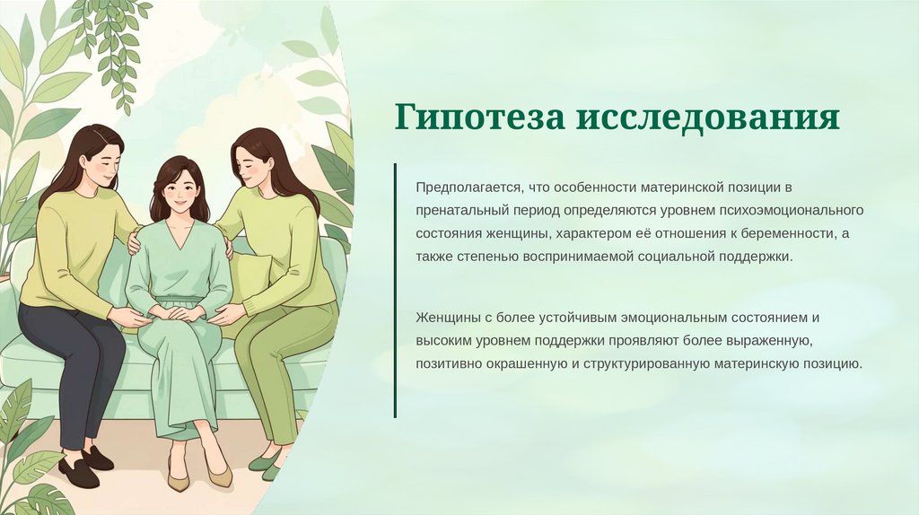 Гипотеза исследованияПредполагается, что особенности материнской позиции в