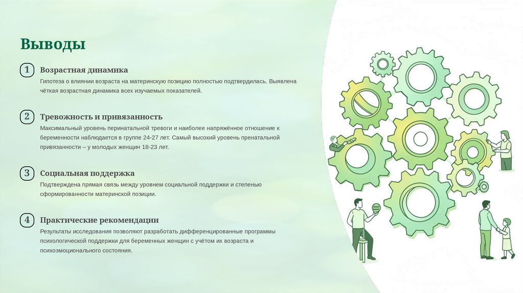 Гипотеза о влиянии возраста на материнскую позицию полностью подтвердилась. Выявлена