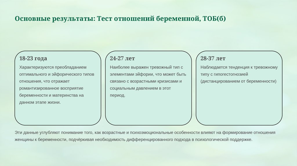Основные результаты: Тест отношений беременной, ТОБ(б)18-23 года