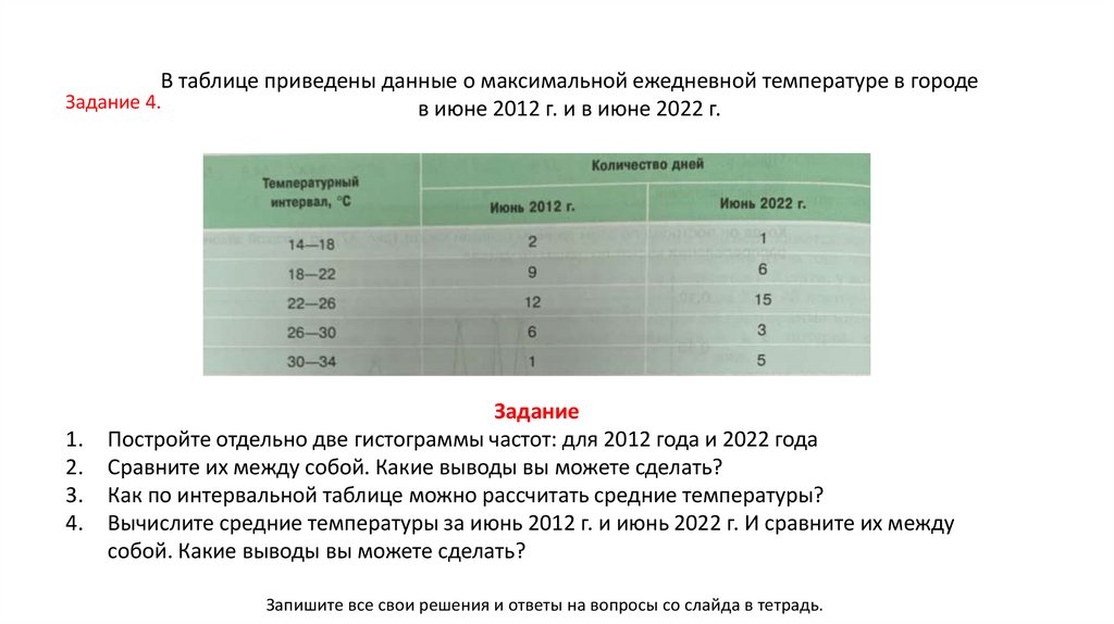 В таблице приведены данные о максимальной ежедневной температуре в городеЗадание 4.