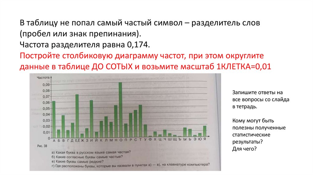 В таблицу не попал самый частый символ – разделитель слов(пробел или знак препинания).