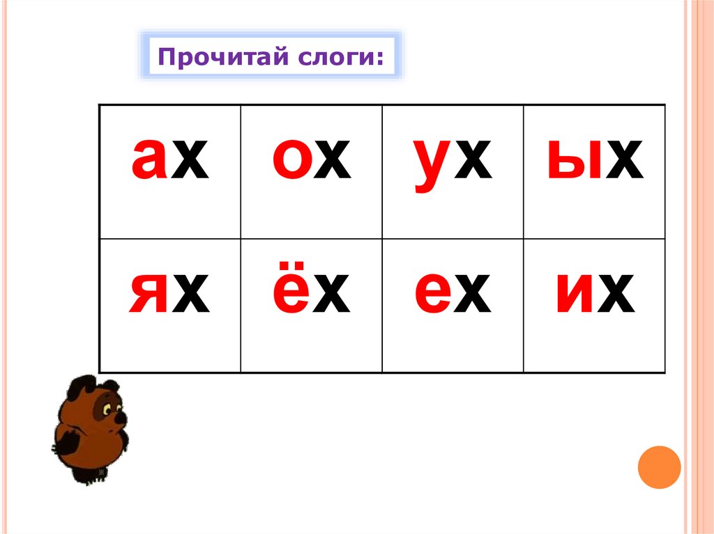 Прочитай слоги:ах ох ух ых