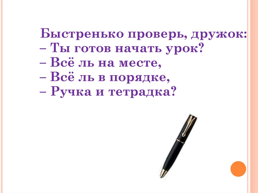 Быстренько проверь, дружок:– Ты готов начать урок?