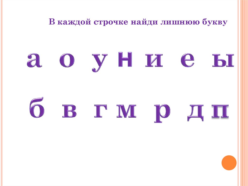 В каждой строчке найди лишнюю букву5.