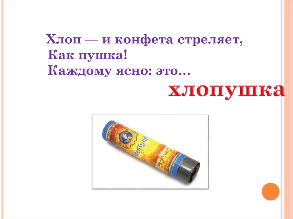 Хлоп — и конфета стреляет,Как пушка!