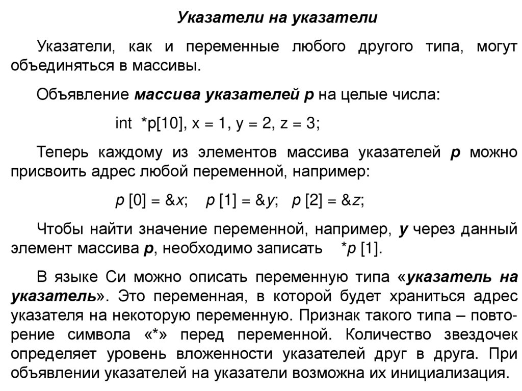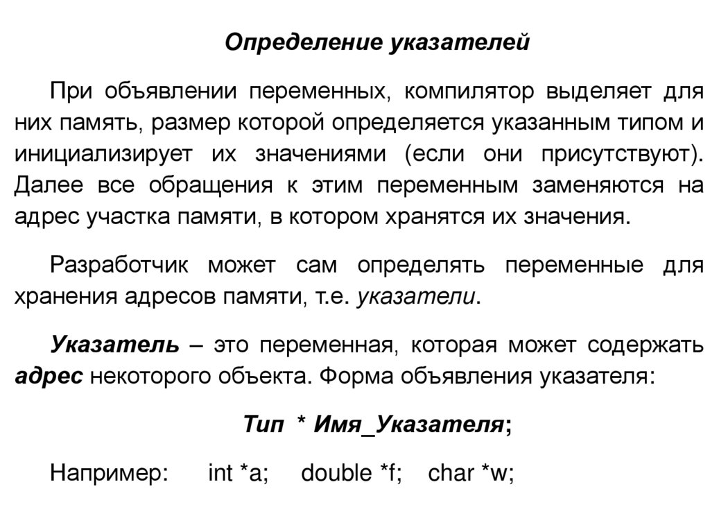 Определение указателейПри объявлении переменных, компилятор выделяет для
