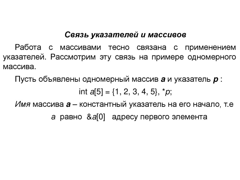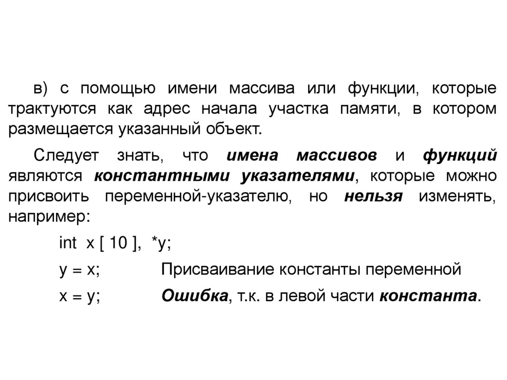 в) с помощью имени массива или функции, которыетрактуются как адрес начала участка памяти, в котором