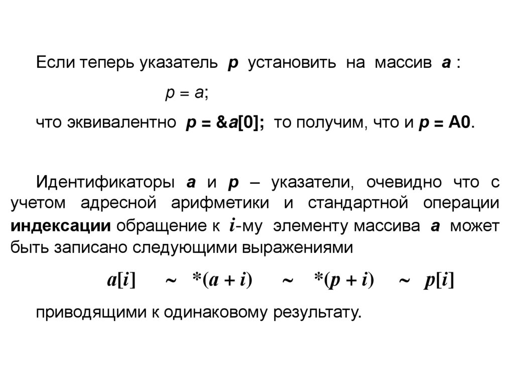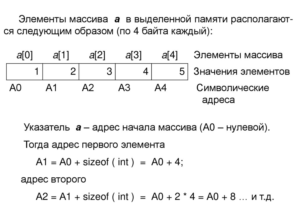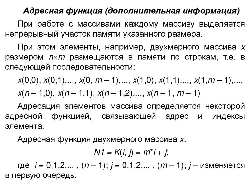 Адресная функция (дополнительная информация)При работе с массивами каждому массиву выделяется