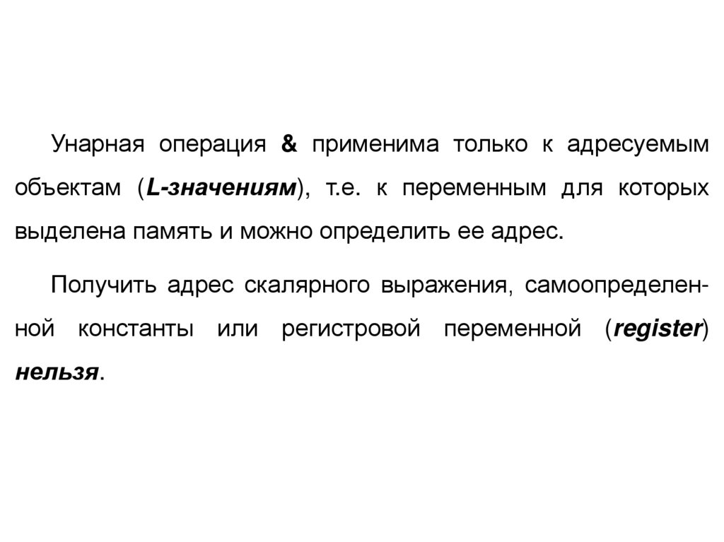 Унарная операция & применима только к адресуемымобъектам (L-значениям), т.е. к переменным для которых