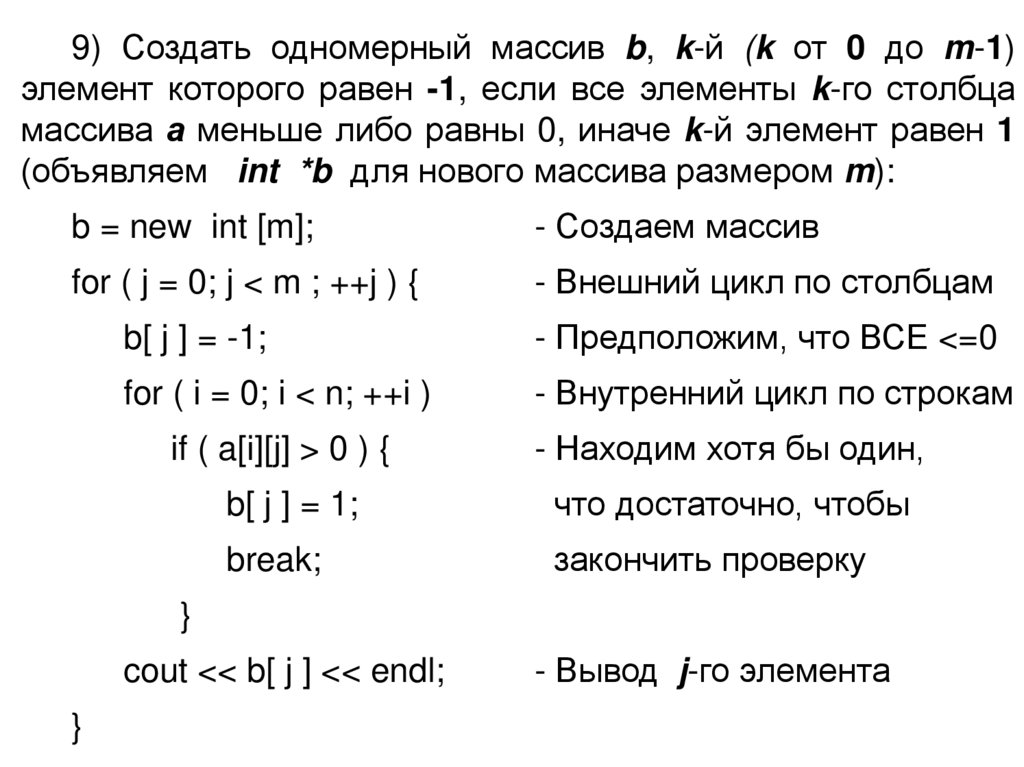 9) Создать одномерный массив b, k-й (k от 0 до m-1)элемент которого равен -1, если все элементы k-го столбца