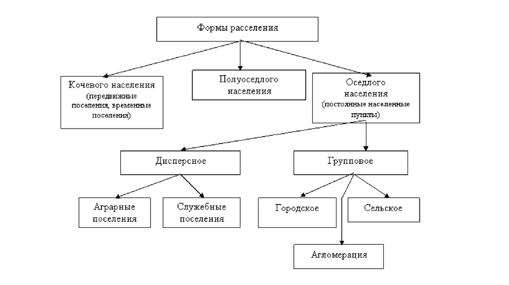 • Сельское расселение возникло с развитием земледелия. Сейчас чуть