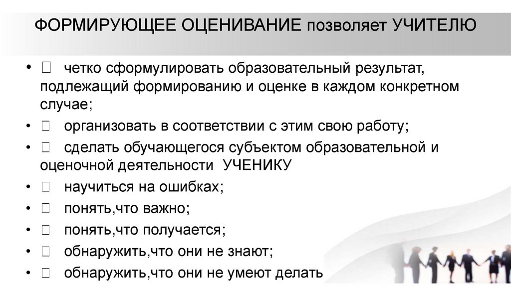 ФОРМИРУЮЩЕЕ ОЦЕНИВАНИЕ позволяет УЧИТЕЛЮчетко сформулировать образовательный результат,