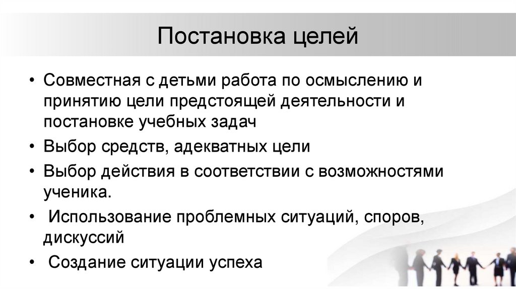 Постановка целей• Совместная с детьми работа по осмыслению и