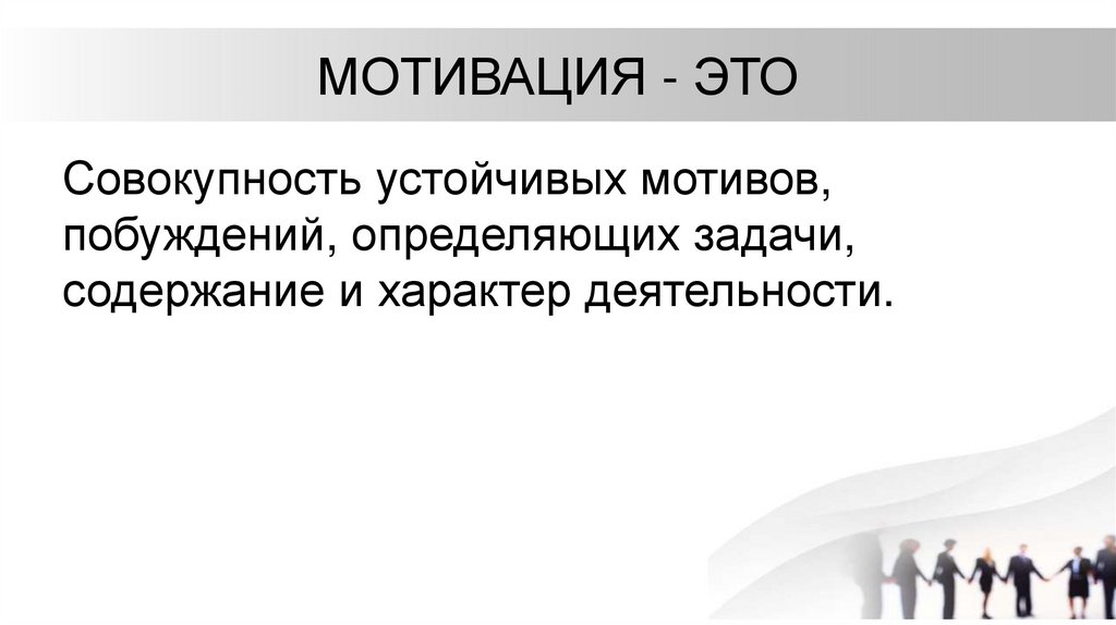 МОТИВАЦИЯ - ЭТОСовокупность устойчивых мотивов,