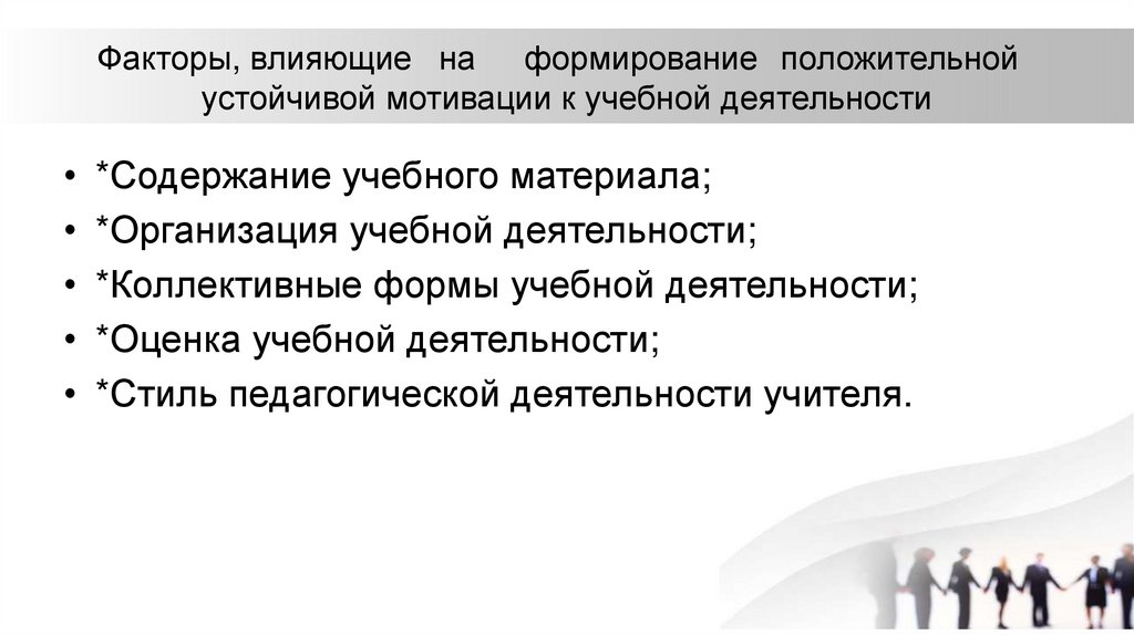 Факторы, влияющие на формирование положительнойустойчивой мотивации к учебной деятельности