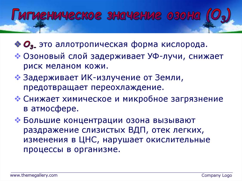 это аллотропическая форма кислорода.Озоновый слой задерживает УФ-лучи, снижает