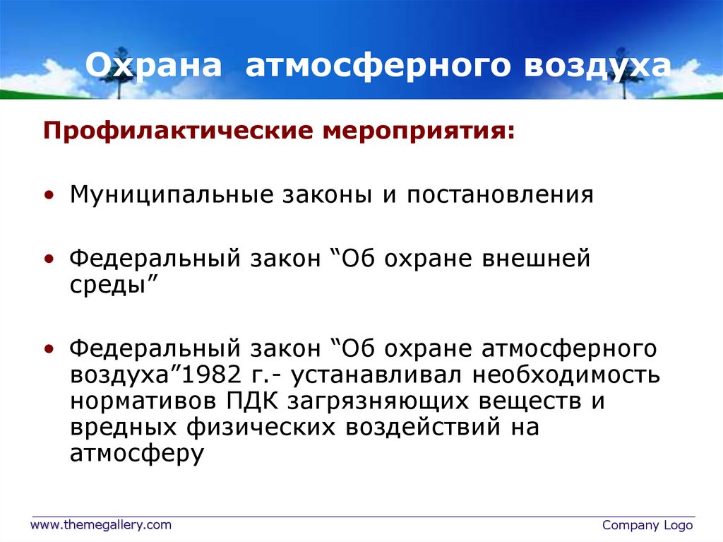 Охрана атмосферного воздухаПрофилактические мероприятия: