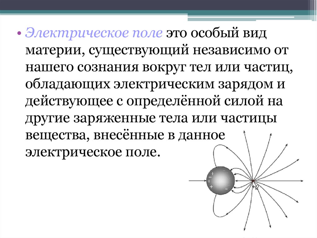• Электрическое поле это особый видматерии, существующий независимо от