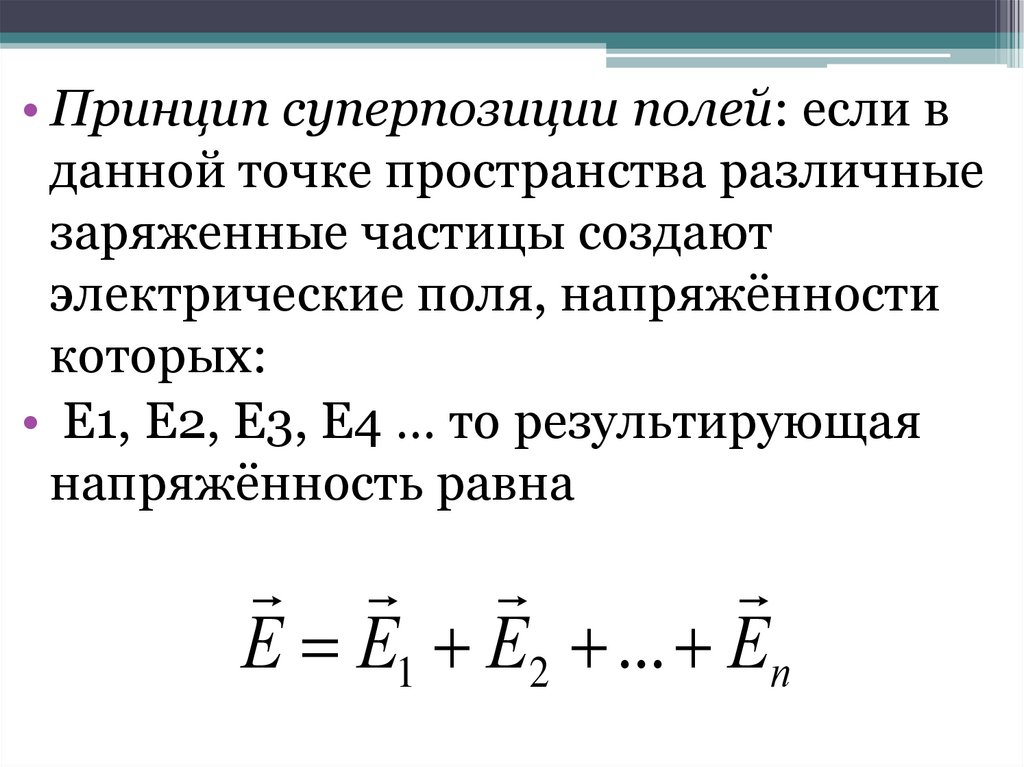 • Принцип суперпозиции полей: если вданной точке пространства различные