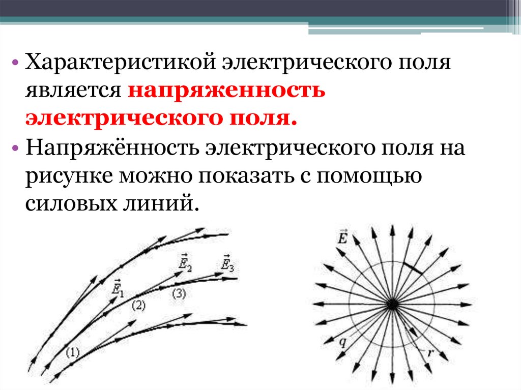 • Характеристикой электрического поляявляется напряженность