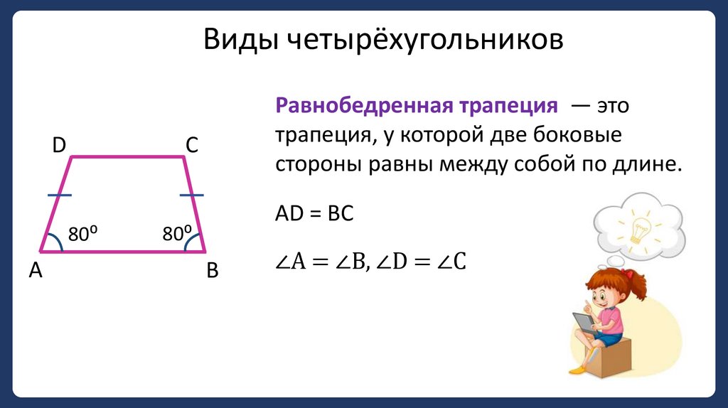 Углы А, В, С, D – углы четырёхугольника АВСD.