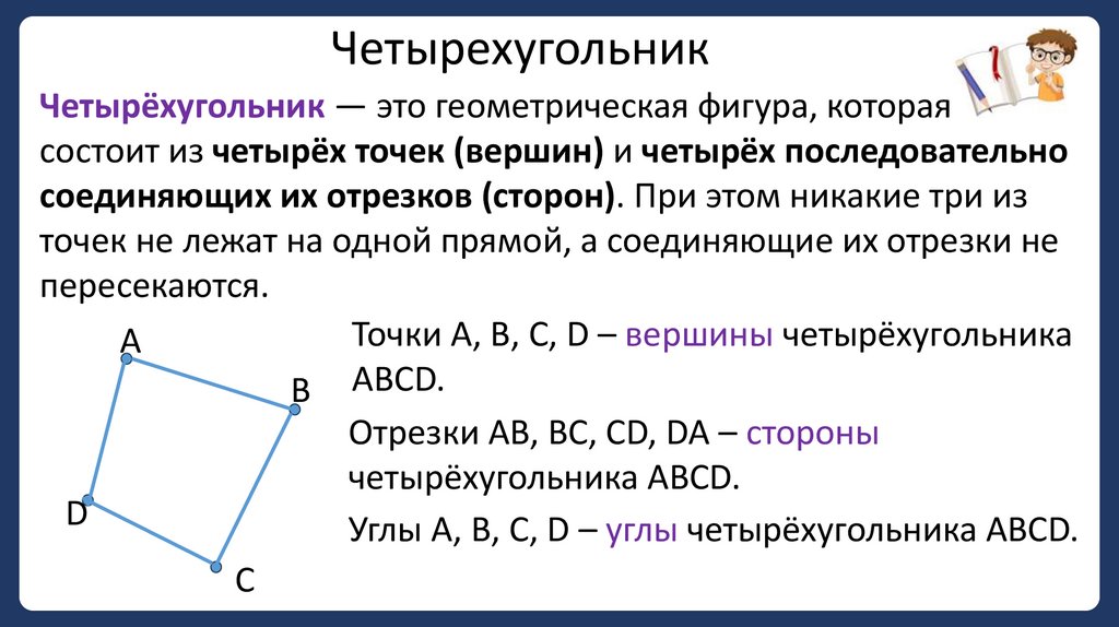 ЧетырехугольникЧетырёхугольник — это геометрическая фигура, которая