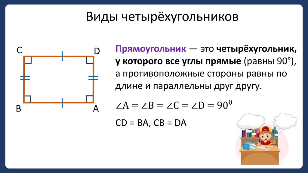∠A = ∠B = ∠C = ∠D = 90⁰