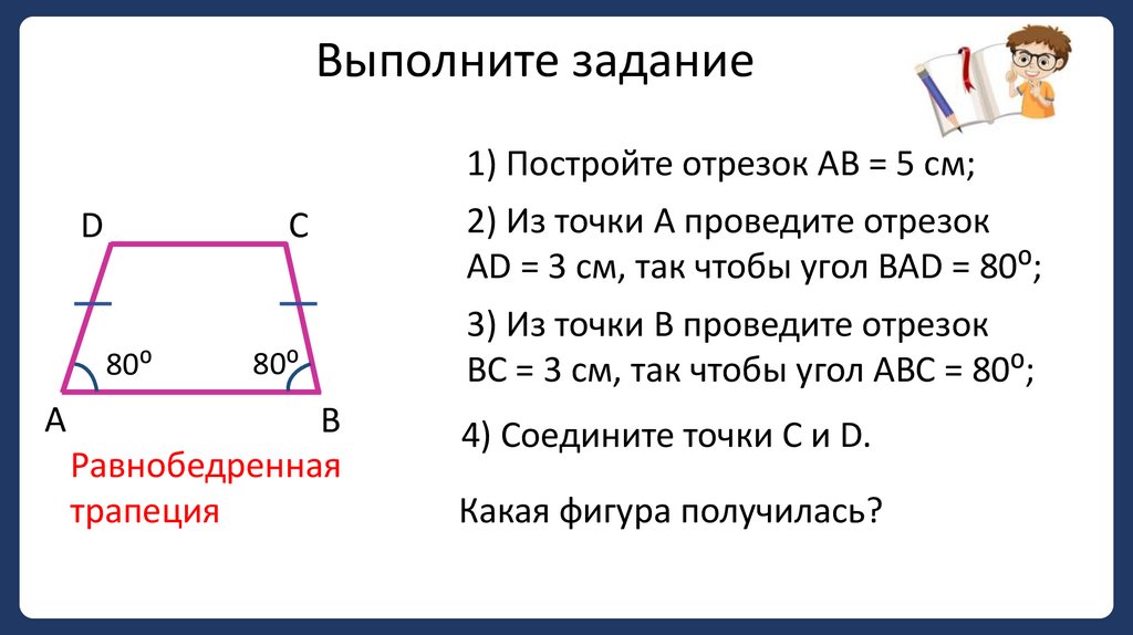 АD = 3 см, так чтобы угол ВАD = 80⁰;
