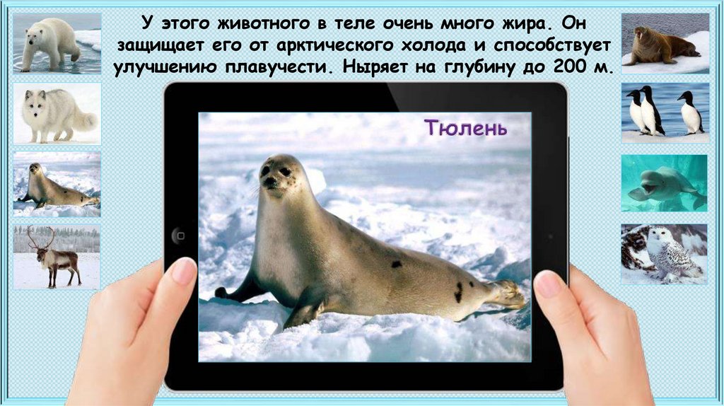 У этого животного в теле очень много жира. Онзащищает его от арктического холода и способствует