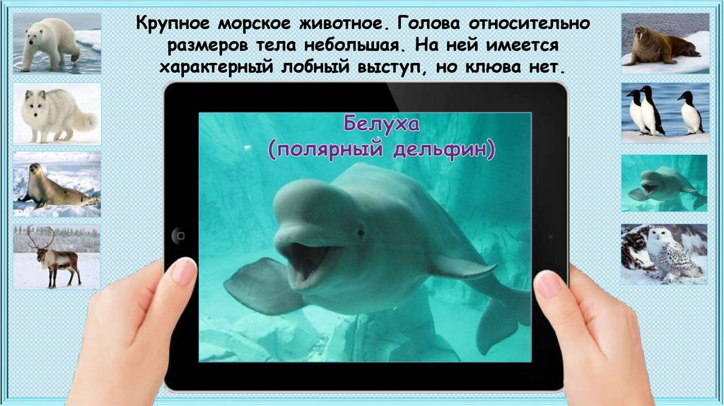 Крупное морское животное. Голова относительноразмеров тела небольшая. На ней имеется