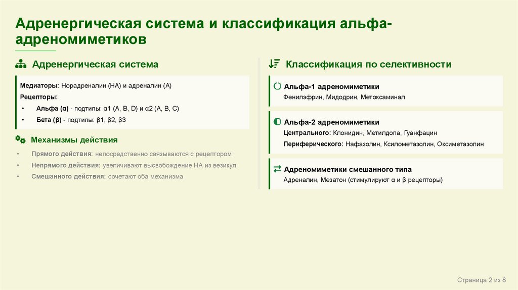 Адренергическая система и классификация альфаадреномиметиковАдренергическая система