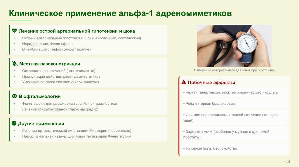 Клиническое применение альфа-1 адреномиметиковЛечение острой артериальной гипотензии и шока