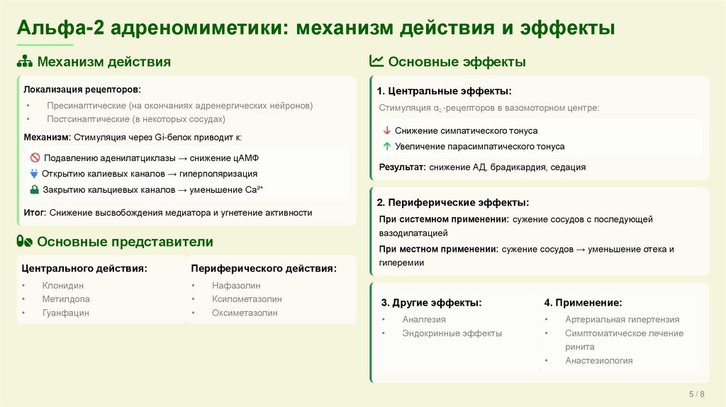 Альфа-2 адреномиметики: механизм действия и эффектыМеханизм действия