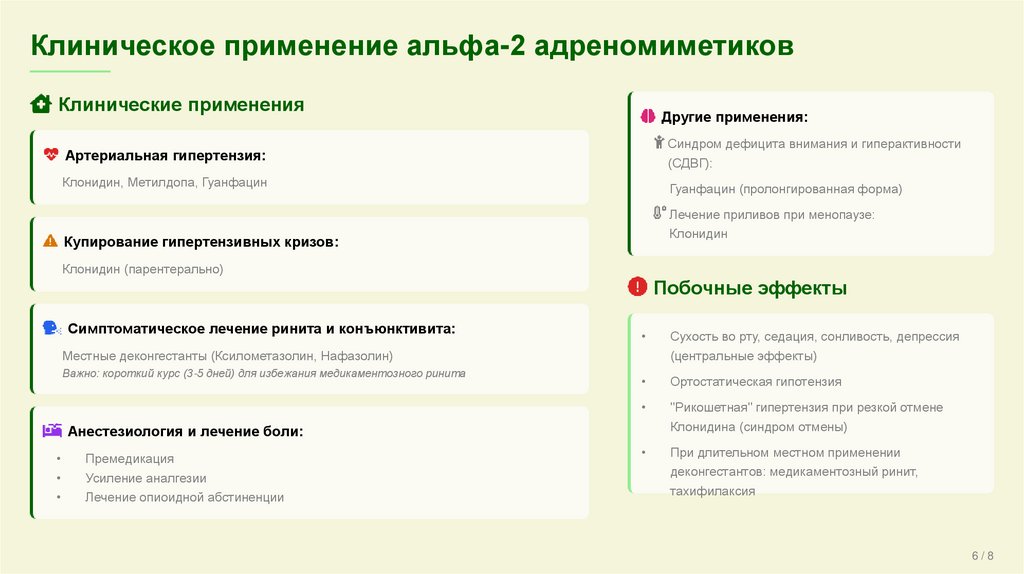 Клиническое применение альфа-2 адреномиметиковКлинические применения