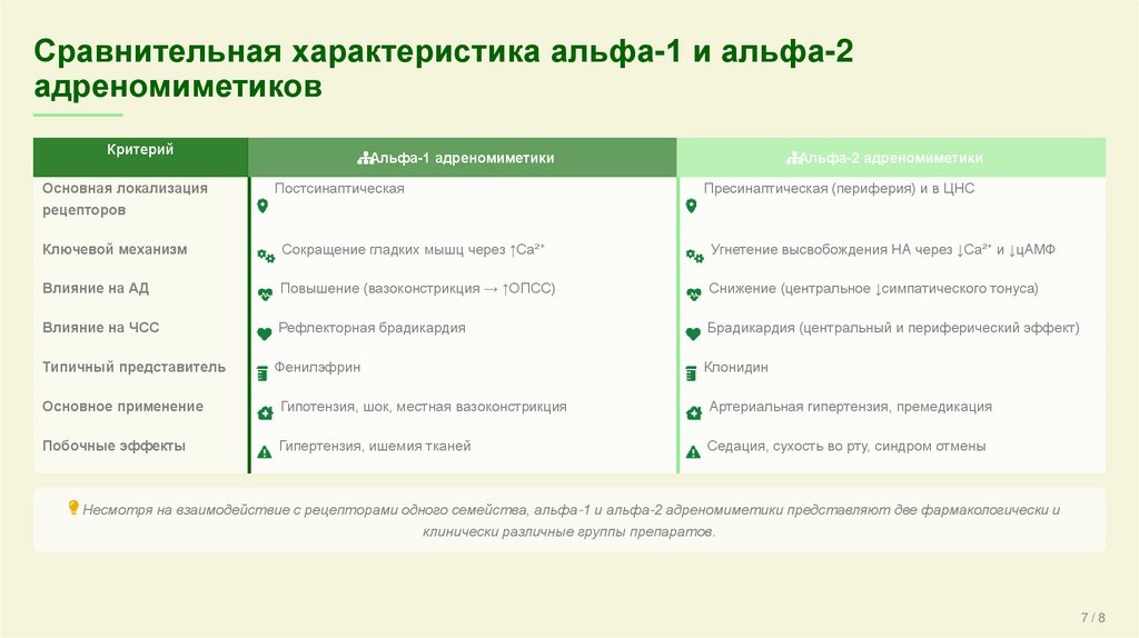 Сравнительная характеристика альфа-1 и альфа-2адреномиметиков